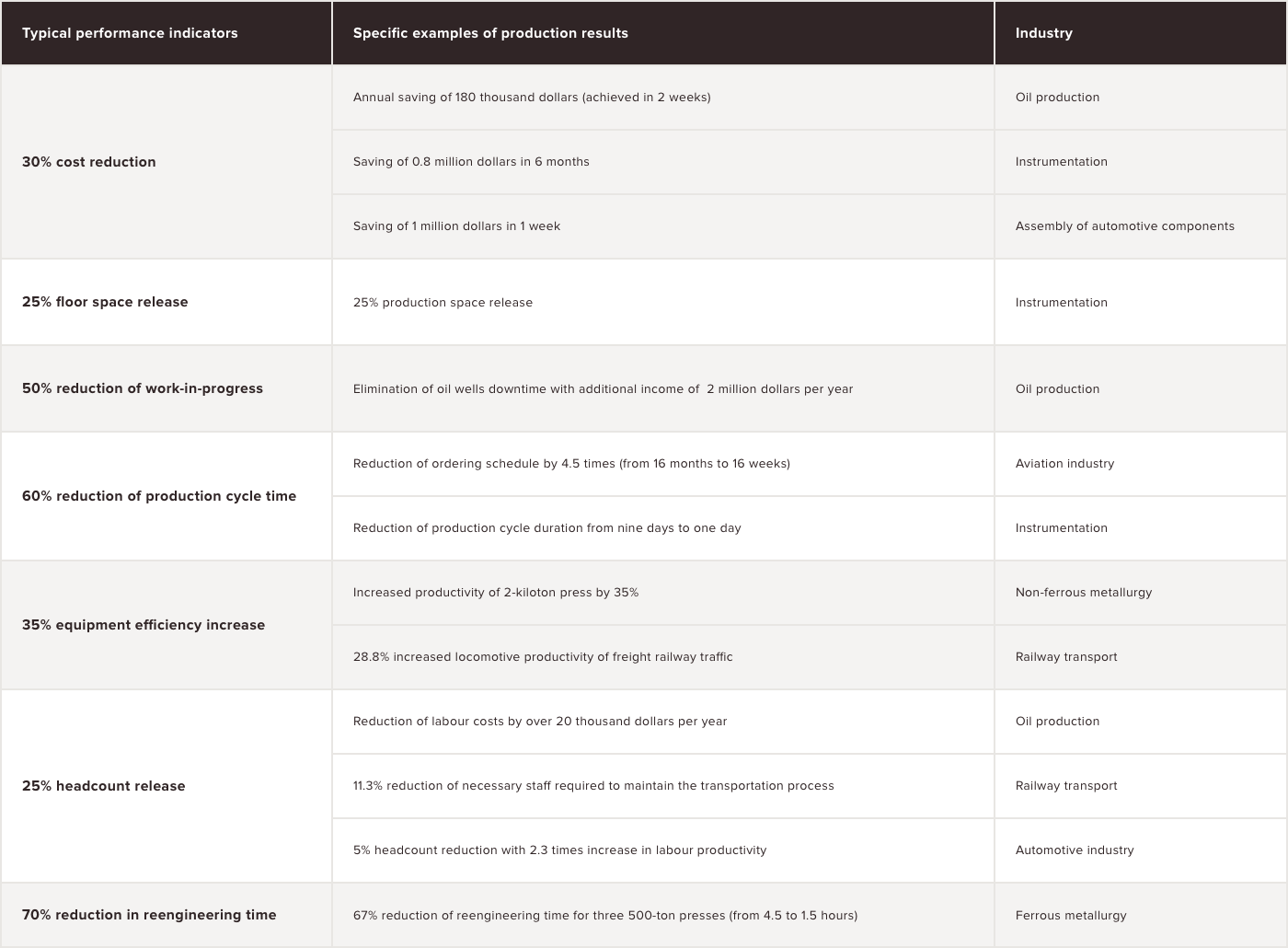 This technology is based on optimization of production which makes its possible to identify the company's surplus processes that do not bring added value to the consumers, or rather reduce it.