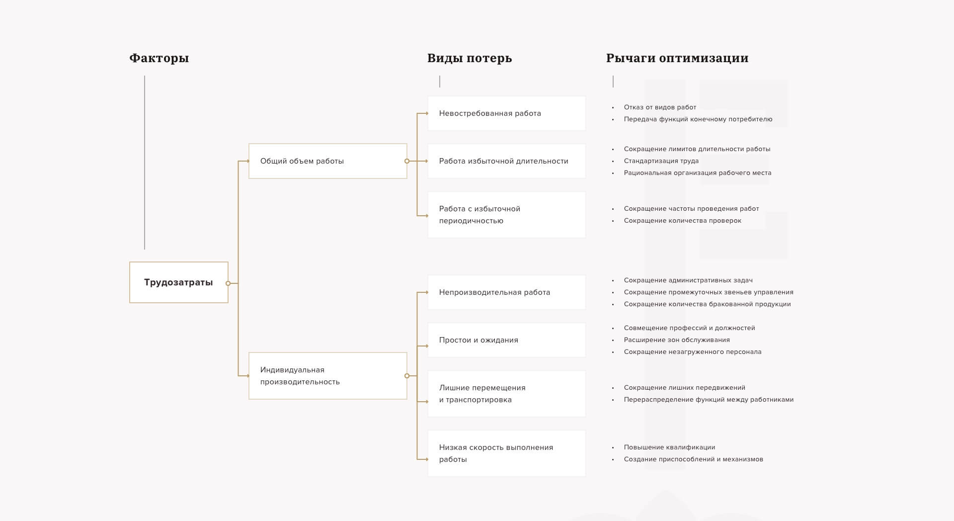 В основе этой технологии лежит оптимизация производства, позволяющая найти на предприятии лишние процессы, не приносящие добавленной стоимости потребителям или уменьшающие ее.