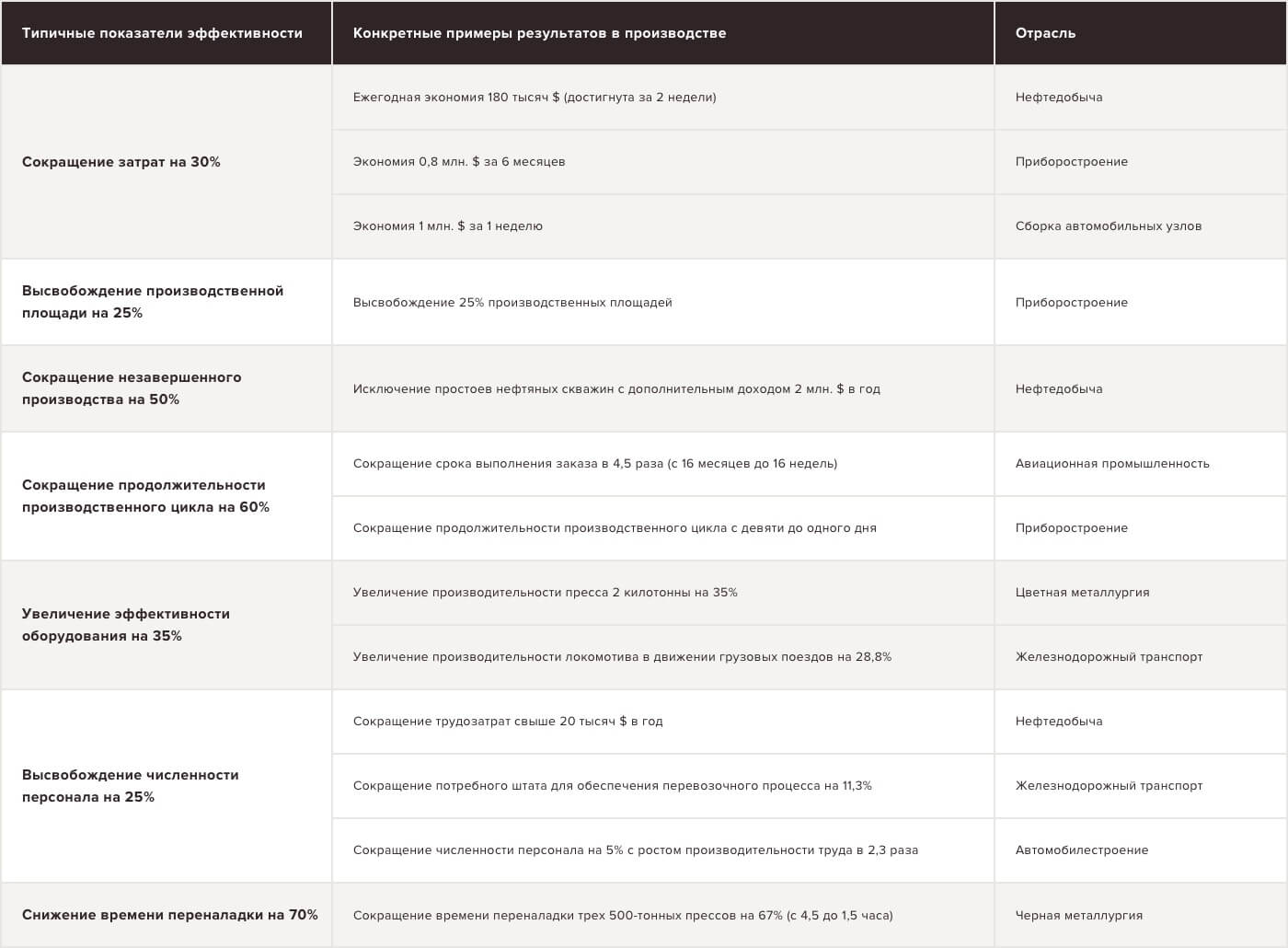 Подтвержденные результаты внедрения RLP в различных отраслях: